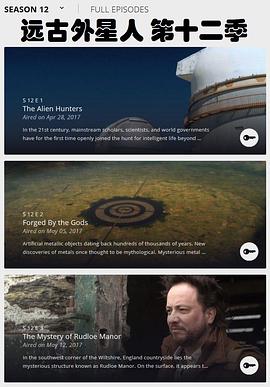 简介:第十二季(播出目录)(2017)Season12https://www.history.com/shows/ancient-aliens/season-12S12E01外星猎人TheAlienHunt 详情